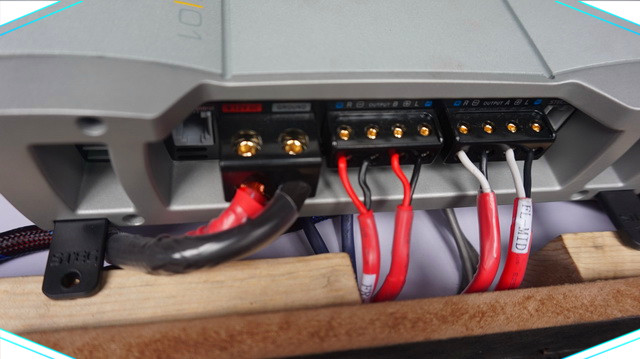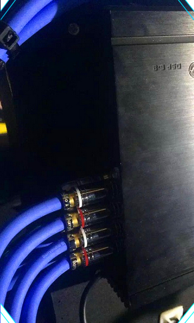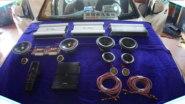 为了保证音源的纯净性和功率的输出稳定,深圳卓凡音樂的改装技师在音源端为汽车添加了一台阿尔派H800音频处理器,同时为汽车的声场喇叭添加了功放以保证功率的输出稳定。