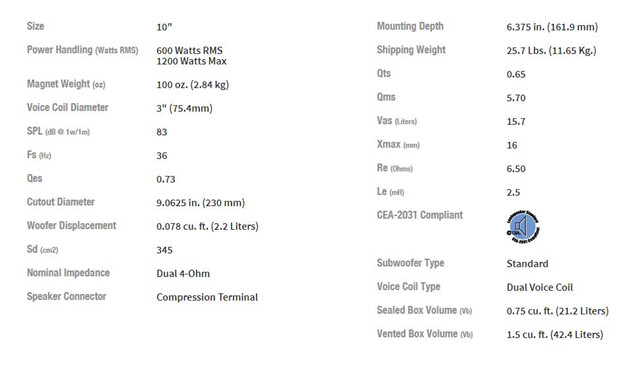 T系列10寸双音圈4Ω低音