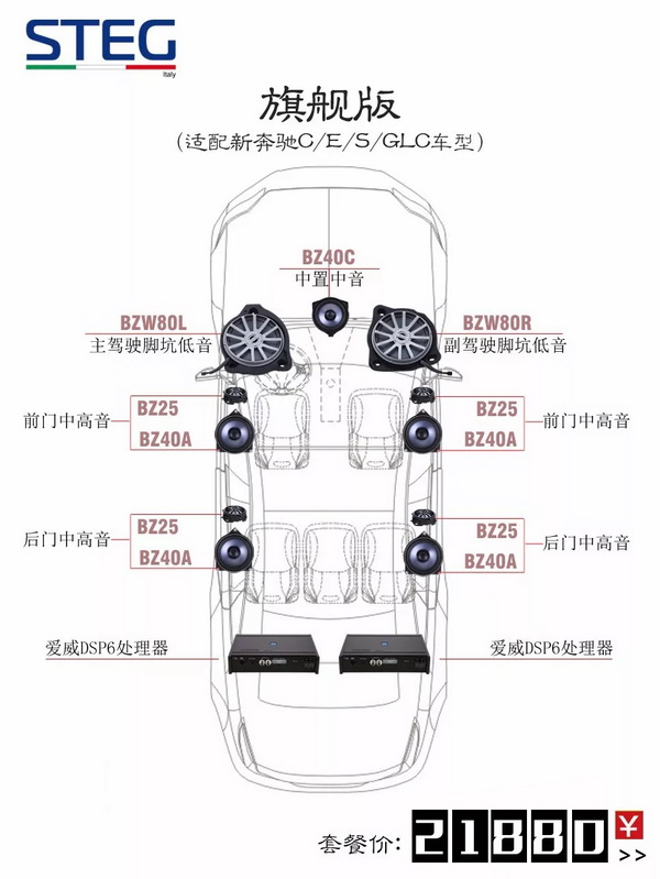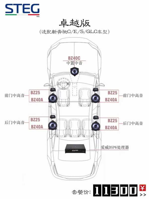 考虑到不同车主对音质追求的不同,STEG设计师制定了不同的搭配组合,分别是: