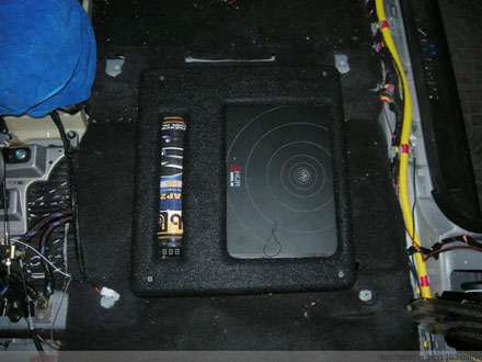 远看现代悦动后尾箱中DB的低音喇叭和功放--美国DB汽车音响经典改装案例