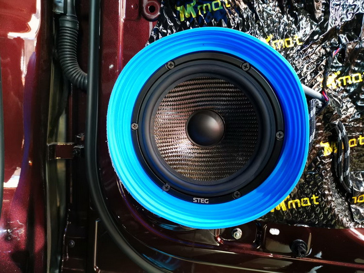 隔音完成后,技师采用原位无损的方式安装,将前声场升级为史泰格MSS石墨烯三分频。这套喇叭的意大利史泰格MSS1高音单元,是由石墨烯材质做成的球顶振膜,并搭配了丝质涂胶折环悬边,使高音的音准高、泛音丰富,穿透力强。而意大利史泰格MSS3中音和意大利史泰格MSS6低音单元,都采用的是玻纤与碳纤混编的音盆振膜,再涂以特殊涂层,使其轻量又高刚,声线更醇厚自然,能够精准重现音乐原声。