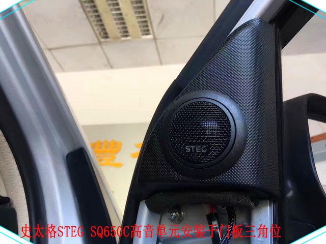 喇叭的选择独特音色可以说是起到直接的影响,在试音间对车主进行多种音色进行试音之后车主都非常喜欢,经过平衡考虑选择史太格STEG SQ650C套装喇叭作为声场喇叭;该喇叭综合表现能力非常强,能够较好的演绎各种音色,在不改变原车主机的情况下也能发挥出其该有的特色,播放出来的音乐清晰干净,低音的下潜深度和力度都非常好。