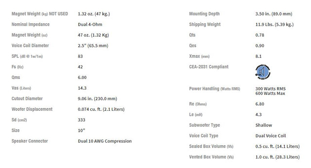 P系列10"双音圈4Ω低音喇叭