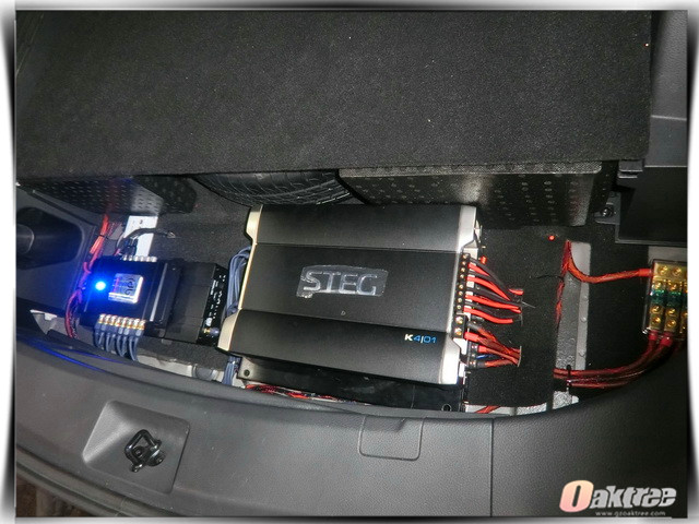 在使用GT减震王对汽车门板做了隔音处理之后,重庆渝大昌的改装技师,将汽车的前声场喇叭,替换成了由史太格STEG IMPERATORE 65C套装和STEG SG30中音,组合而成的三分频套装喇叭,它可以让音乐的层次感更加分明,饱满度更强,从而为车主带来原汁原味的音乐。后声场使用的飞仕两分频套装,也让后排乘客可以听到优质的音乐。